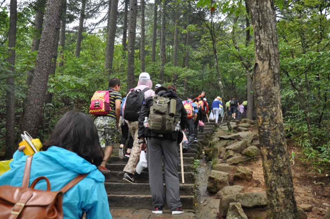 這天的天氣是再適合爬山不過(guò)了,大家早早準(zhǔn)備好了大背包小背包的食物和水,個(gè)個(gè)壯志雄心、意氣風(fēng)發(fā)、精神抖擻,朝著黃山之巔奮力前進(jìn)。攀登開(kāi)始了,因?yàn)殚_(kāi)始的激情一下就走到了半山腰,但大約1小時(shí)后便開(kāi)始有同事邁不動(dòng)腳步了,肩上背的背包原來(lái)這么重,都不知道自己帶了些什么,恨不得現(xiàn)在一口氣把背包里所有食物都吃進(jìn)肚子里來(lái)減輕肩上重任。體力好的同事主動(dòng)幫助身體瘦弱的女同事提拿包裹行李,互相鼓勵(lì),互相攙扶,靠團(tuán)結(jié)的力量一步步前行。