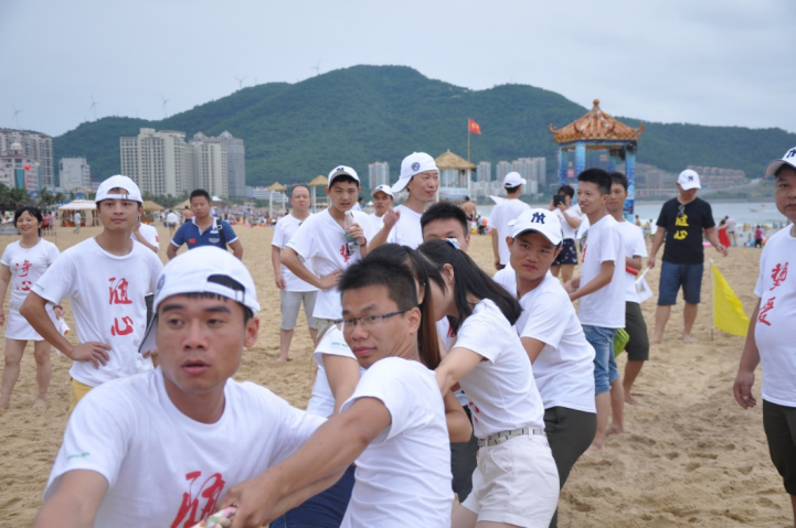 拔河比賽是適合團隊培養(yǎng)凝聚力的活動,在細(xì)膩柔軟的沙灘上,有碧海藍(lán)天做背景,是不是更適合拔河,我們要更拼出我們的團結(jié)我們的力量來,不能辜負(fù)海陵島這美麗的海景?。?/span>